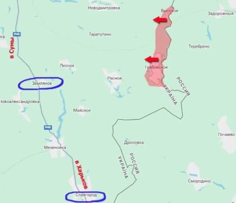 Во-вторых, недалеко от границы проходит стратегическая трасса «Харьков-Сумы», по которой ВСУ перебрасывает силы вдоль нашего приграничья. Она, конечно, не единственная, но, пожалуй, самая удобная и оперативная. От Грабовского до этой дороге — порядка 10 километров. То есть, по факту, мы уже взяли ее под огневой контроль. Физическое перерезание трассы значительно усложнит логистику противника на этом направлении.