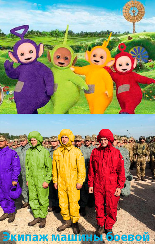 Все военные одеты в новые, с иголочки мундиры, дизайн которых разработали те же геи в тесном сотрудничестве с дизайнерами вермахта и сотрудниками МО, сидящими на откатах. Форма получилась просто загляденье: береты с мальтийским крестом, плавно обтекающие голову и делающие ее (голову) похожей на зал… простите, окончание мужского полового члена. То-то ЛГБТ так возбудились. Вместо «коммунистических звездочек» – правильные четырехугольники в форме ромба и так далее и тому подобное. А комбинезоны для танкистов! Просто песня: полное сходство с презервативом, к которому почему-то приделали шлем, упакованный в отдельный гандон. Все «воины» просто в восторге от нововведений. За исключением мелких недостатков – легко горит, натирает яйца и неудобна в ношении – продвинутая военная форма независимой Украины им крайне нравится.